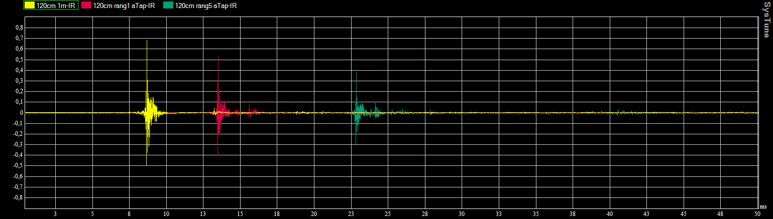 120cm 1mRang1rang5_IR 2017-08-28Pleine résolution (1539 × 437) Enceinte sur pied (axe à 120cm) / Réponse imulsionnelle en fonction de la distance