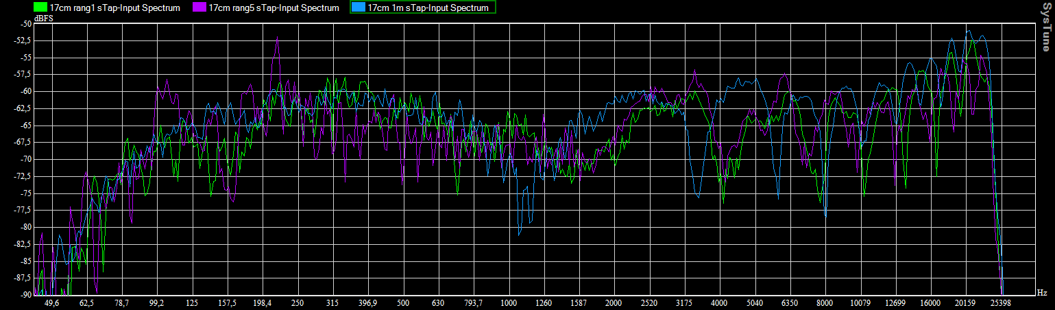 17cm 1mRang1rang5_sTap_spectr 2017-08-28Pleine résolution (1539 × 452) Enceinte légèrement surélevée (axe à 17cm) / Sans tapis / Spectre en fonction de la distance