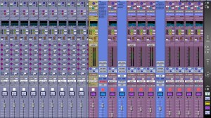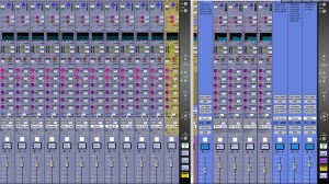 Dans ce cas les micros étaient à des positions fixes sur scène étant donné que l’action se déroule en un nombre limité d’endroits. La spatialisation ici se fait en dupliquant des voies ou des prémix avec des délais différents assignés aux voies de sortie.