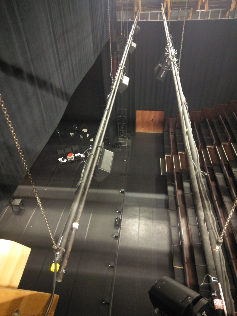 Then some hands-on time to rig the system and most importantly to tune it to have an homogenous coverage of the audience and to have matching positions between the visual cues on stage and the perceived positions in the spatialisation of the sounds. To push things a little further we can try to improve things with some active acoustics in the WFS system.